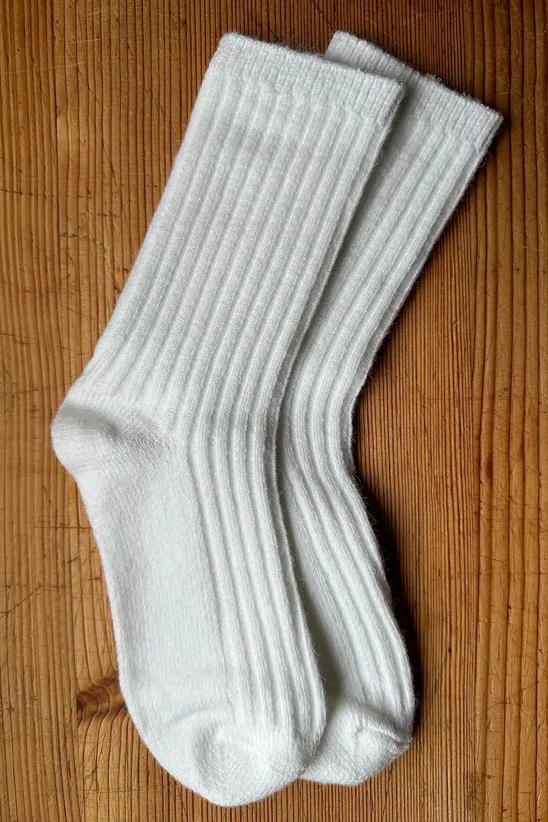 Wool Blend Crew Socks in Off White by Mabel + Meg